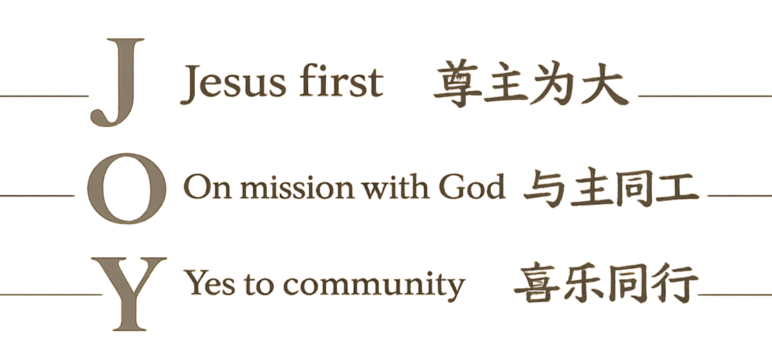 喜乐教会的使命是通过建立有爱的社群,传扬福音,尊荣上帝。我们希望成为一个联系密切的群体——所有家庭成员可以彼此信靠;所有喜乐教会的孩子们都是朋友;每个成员,每个家庭,都能在喜乐教会里获得真正的关切,祝福,友谊,以及家人一般的温暖。让生命能够从一个这样的信仰群体中获得滋养,从而真正认识神,顺服祂的引领。